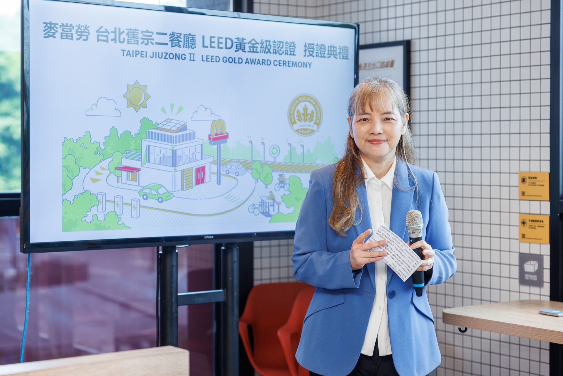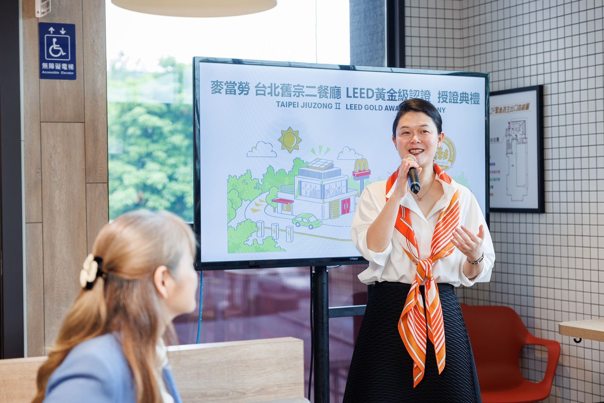 3月24日,USGBC及GBCI北亞區副總裁王婧親臨台灣,為「麥當勞台北舊宗二店」頒發LEED v4 BD+C(新建建築類:零售)黃金級認證,該專案正式成為全台第一家獲得LEED認證的麥當勞餐廳。麥當勞總裁陶華君親自出席授證儀式,與團隊共同見證這份榮耀。這間指標性餐廳高度重視永續發展並將其融入顧客體驗,導入了建材整合型太陽能發電系統(BIPV)、使用回收衣物再製的循環建材,並在店內精心規劃綠建築教育標誌系統。